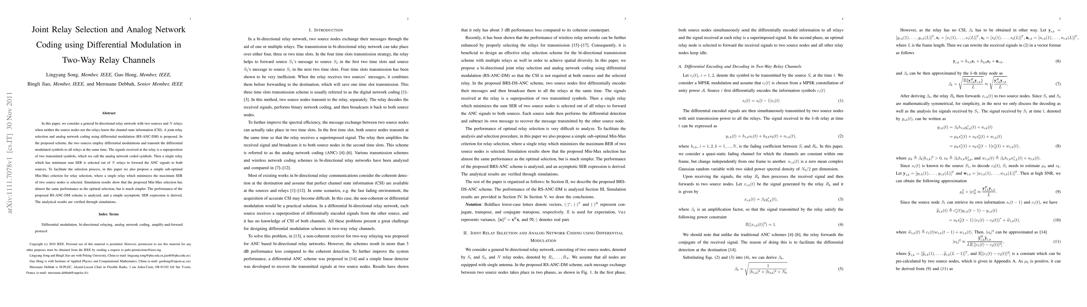 This paper proposes a joint relay selection and analog network coding scheme using differential modulation in two-way relay channels. The method selects a single relay minimizing the maximum symbol error rate for efficient signal transmission, demonstrating near-optimal performance with simpler selection criteria.