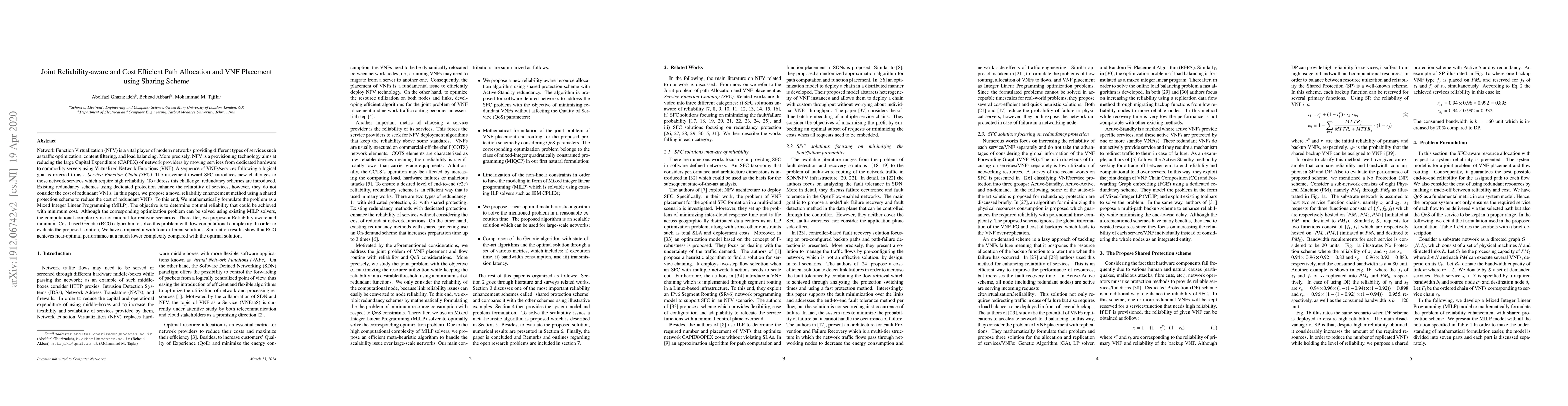 This paper proposes a new method to improve reliability in Network Function Virtualization (NFV) while reducing costs using a shared protection scheme, achieving near-optimal performance at lower computational complexity compared to existing methods.