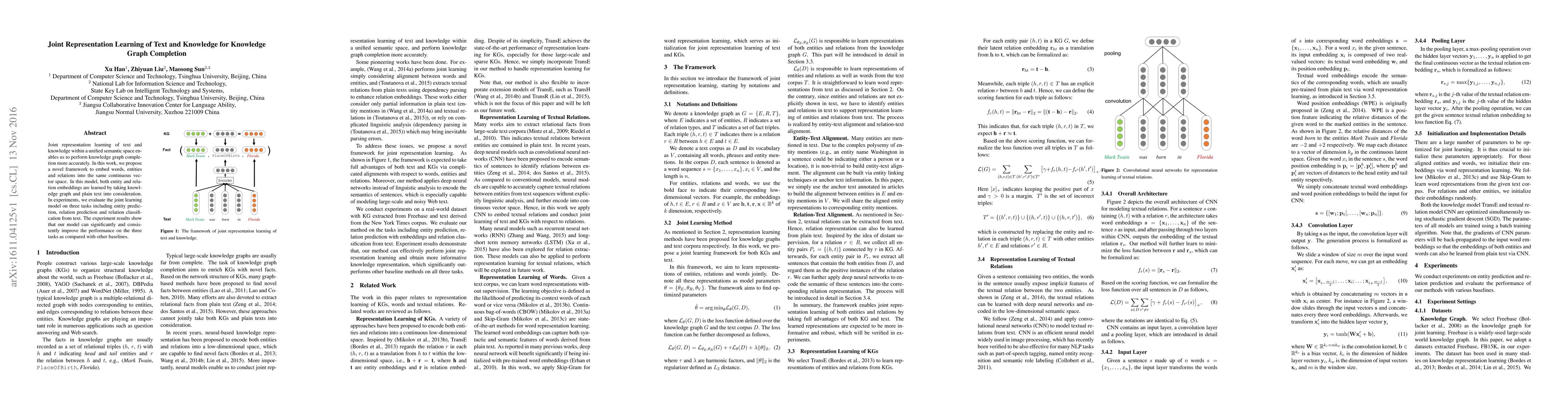 This paper proposes a novel framework for embedding words, entities, and relations into a unified semantic space to enhance knowledge graph completion. The joint representation learning model significantly improves performance on entity prediction, relation prediction, and relation classification tasks compared to baselines.