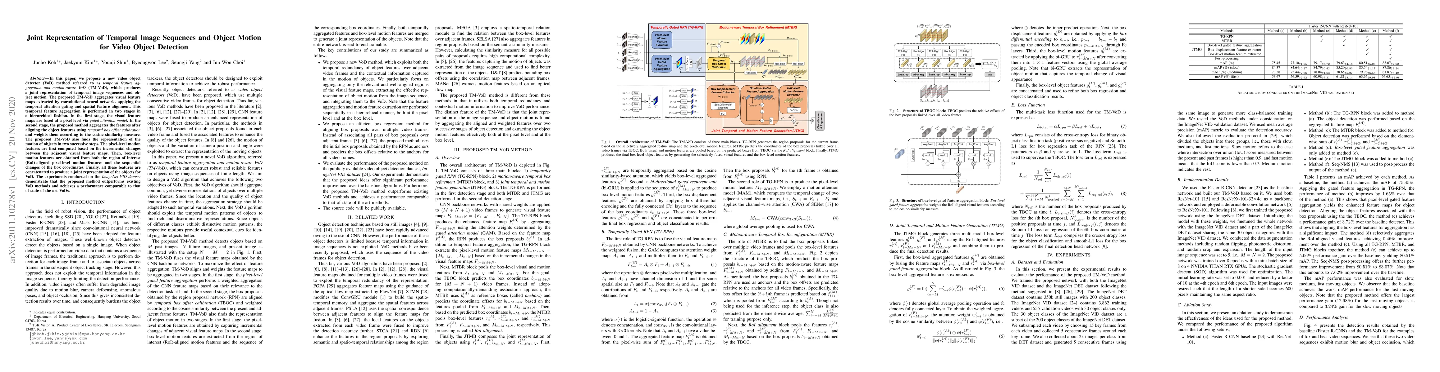 This paper introduces TM-VoD, a video object detection method that combines temporal image sequences and object motion using hierarchical temporal feature aggregation and motion-aware representation. TM-VoD outperforms existing video object detectors on the ImageNet VID dataset, demonstrating improved performance for object detection in video sequences.