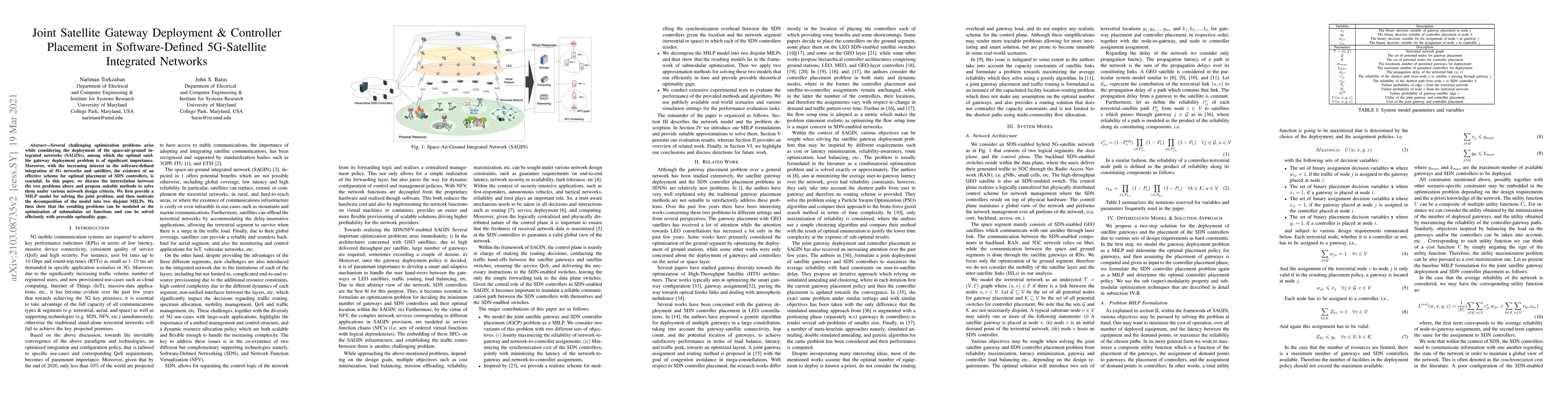 This paper addresses the optimization of satellite gateway deployment and SDN controller placement in 5G-satellite integrated networks. It proposes a mixed-integer linear programming (MILP) model for joint optimization and decomposes it into two separate MILPs, which can be solved efficiently using submodular optimization techniques.