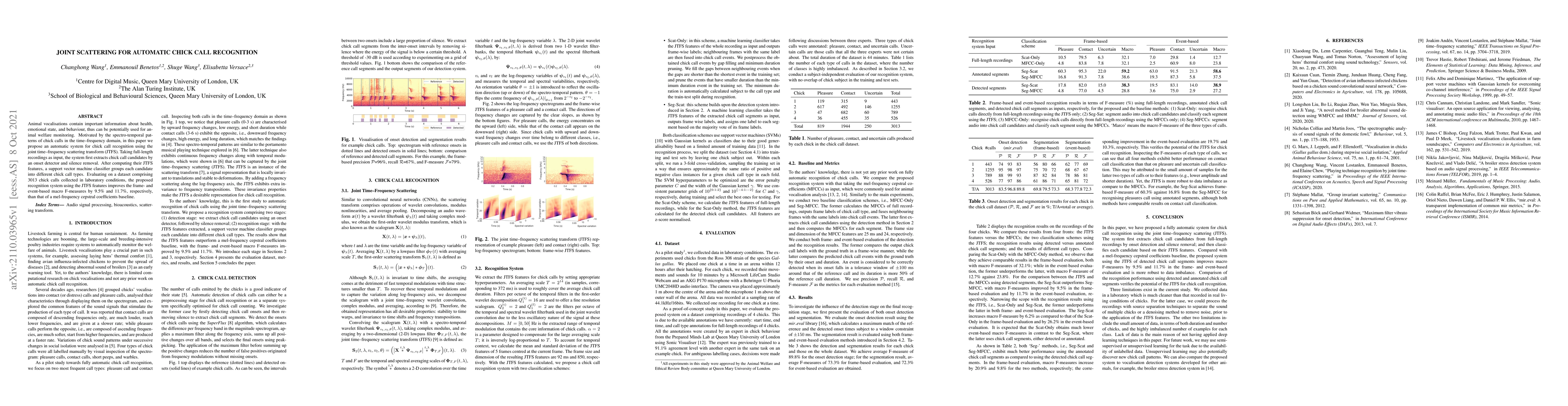 A fully automatic system for chick call recognition using joint time-frequency scattering (JTFS) was proposed.