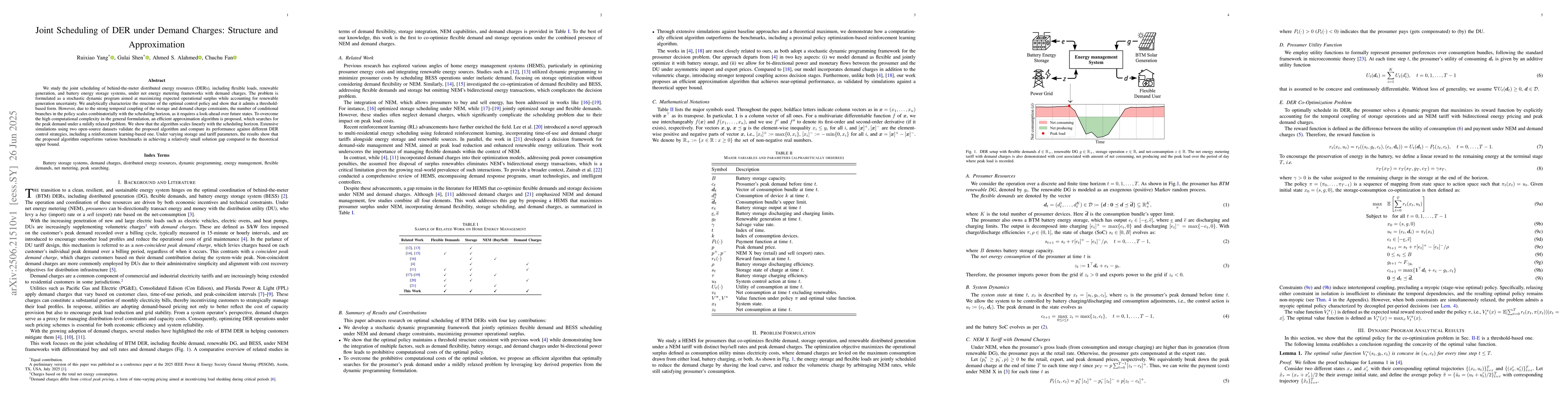 The paper formulates the joint scheduling of DERs as a stochastic dynamic program, characterizes the optimal policy structure, and develops an efficient approximation algorithm based on problem relaxation and threshold policies.