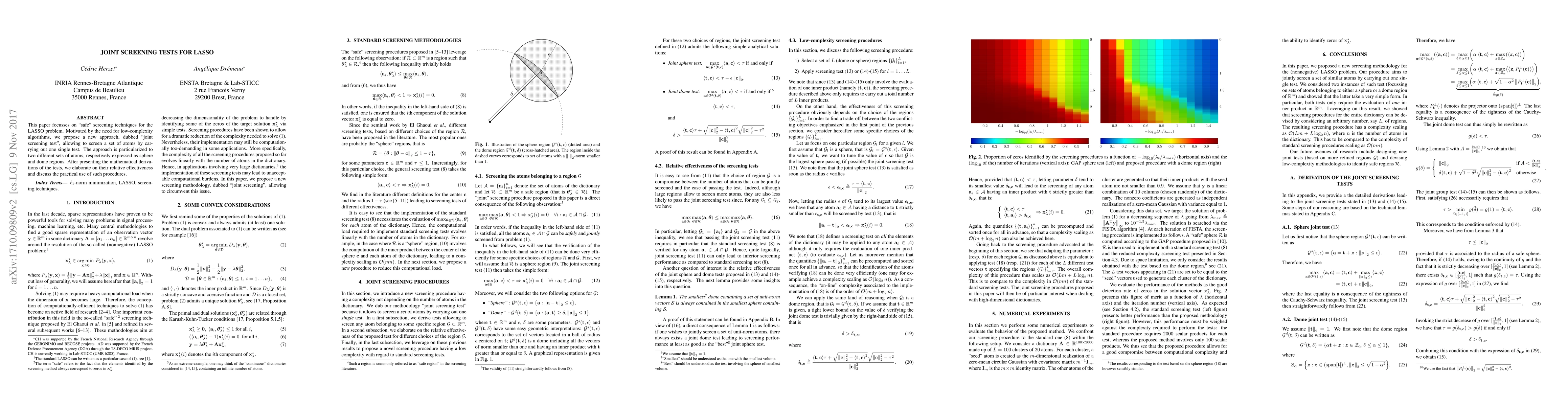 Researchers propose a new 'joint' screening test for the LASSO problem, allowing for efficient screening of atoms in two different sets using a single test, improving complexity and practicality.