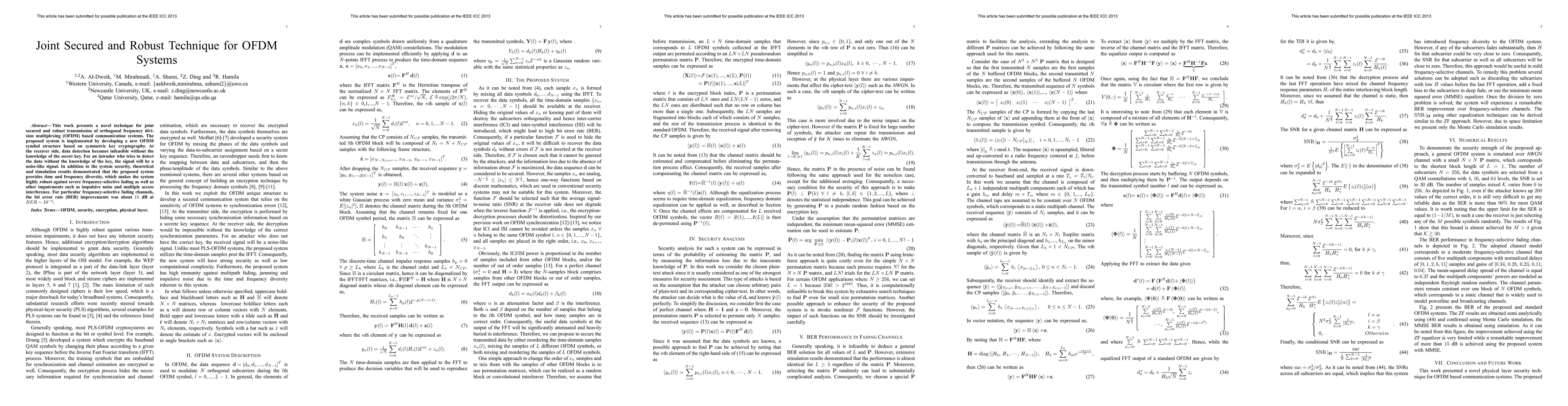 This paper proposes a new technique for secure and robust OFDM transmission using symmetric key cryptography, offering improved security and resistance to frequency-selective fading and other impairments.