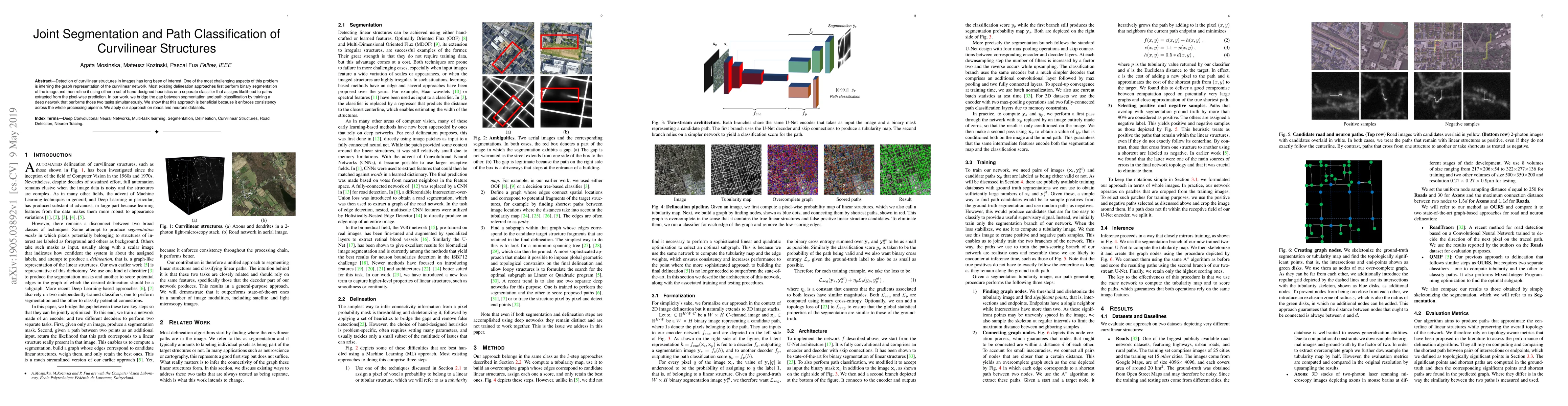 Detection of curvilinear structures in images has long been of interest. One of the most challenging aspects of this problem is inferring the graph representation of the curvilinear network. Most existing delineation approaches first perform binary segmentation of the image and then refine it using either a set of hand-designed heuristics or a separate classifier that assigns likelihood to paths extracted from the pixel-wise prediction. In our work, we bridge the gap between segmentation and path classification by training a deep network that performs those two tasks simultaneously. We show that this approach is beneficial because it enforces consistency across the whole processing pipeline. We apply our approach on roads and neurons datasets.