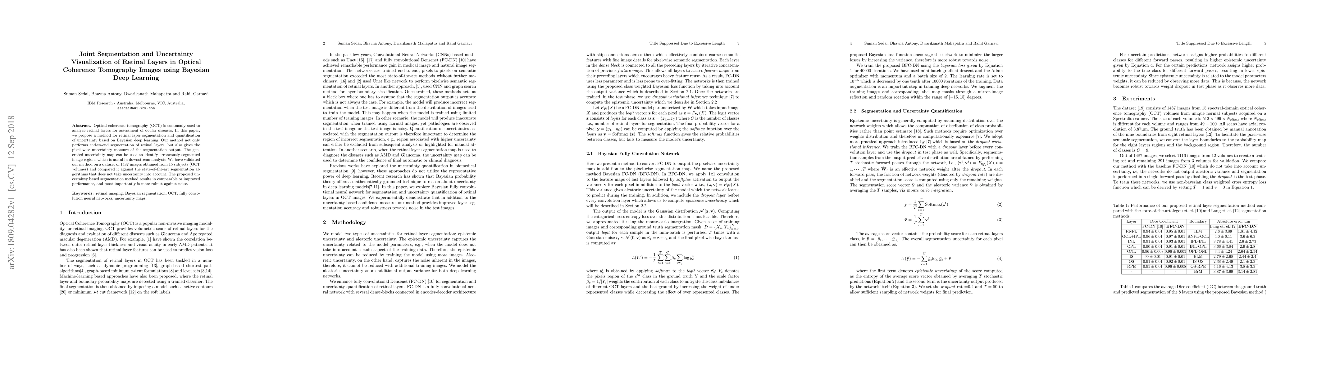 This paper proposes a Bayesian deep learning method for segmenting retinal layers in OCT images and quantifying segmentation uncertainty. The method provides pixel-wise uncertainty measures, enhancing robustness against noise and aiding in identifying erroneous segmentations.