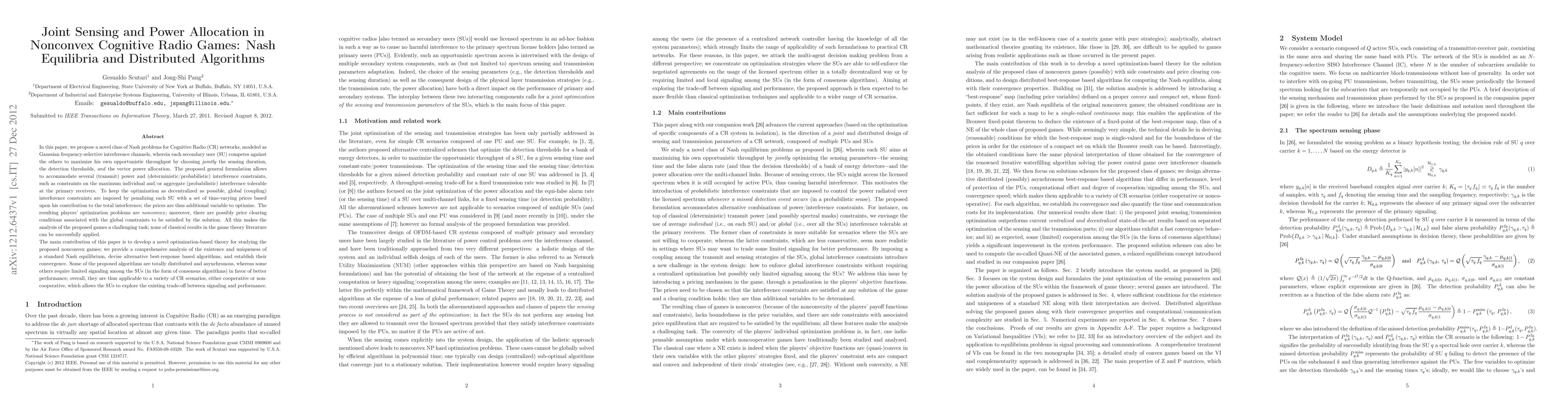 In this paper, we propose a novel class of Nash problems for Cognitive Radio (CR) networks, modeled as Gaussian frequency-selective interference channels, wherein each secondary user (SU) competes against the others to maximize his own opportunistic throughput by choosing jointly the sensing duration, the detection thresholds, and the vector power allocation. The proposed general formulation allows to accommodate several (transmit) power and (deterministic/probabilistic) interference constraints, such as constraints on the maximum individual and/or aggregate (probabilistic) interference tolerable at the primary receivers. To keep the optimization as decentralized as possible, global (coupling) interference constraints are imposed by penalizing each SU with a set of time-varying prices based upon his contribution to the total interference; the prices are thus additional variable to optimize. The resulting players' optimization problems are nonconvex; moreover, there are possibly price clearing conditions associated with the global constraints to be satisfied by the solution. All this makes the analysis of the proposed games a challenging task; none of classical results in the game theory literature can be successfully applied. The main contribution of this paper is to develop a novel optimization-based theory for studying the proposed nonconvex games; we provide a comprehensive analysis of the existence and uniqueness of a standard Nash equilibrium, devise alternative best-response based algorithms, and establish their convergence.