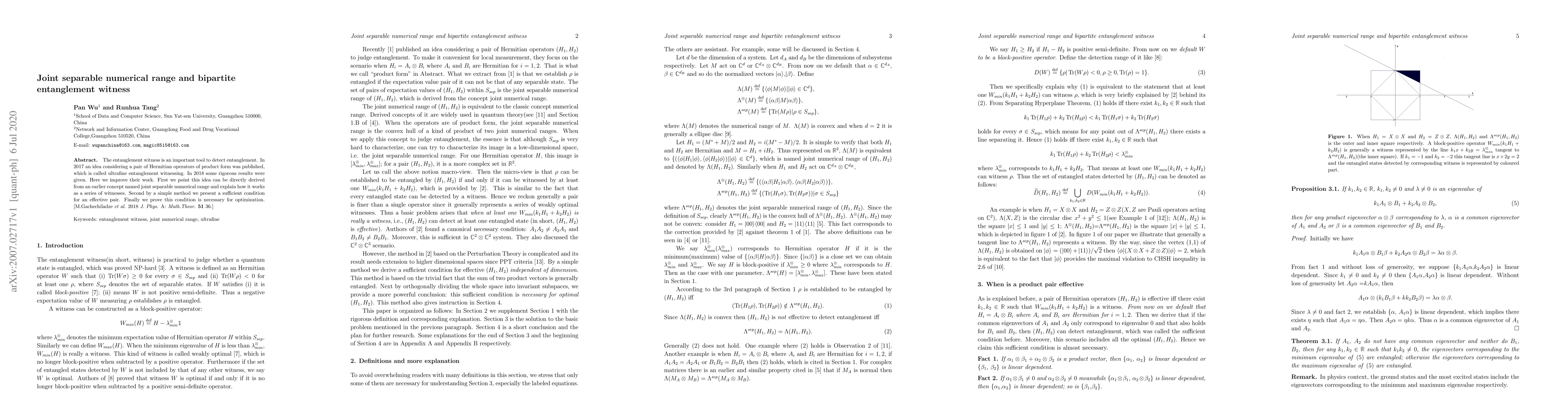 In 2017 an idea considering a pair of Hermitian operators of product form was published, which is called ultrafine entanglement witnessing. In 2018 some rigorous results were given. Here we improve their work. First we point this idea can be directly derived from an earlier concept named joint separable numerical range and explain how it works as a series of witnesses. Second by a simple method we present a sufficient condition for an effective pair. Finally we prove this condition is necessary for optimization.