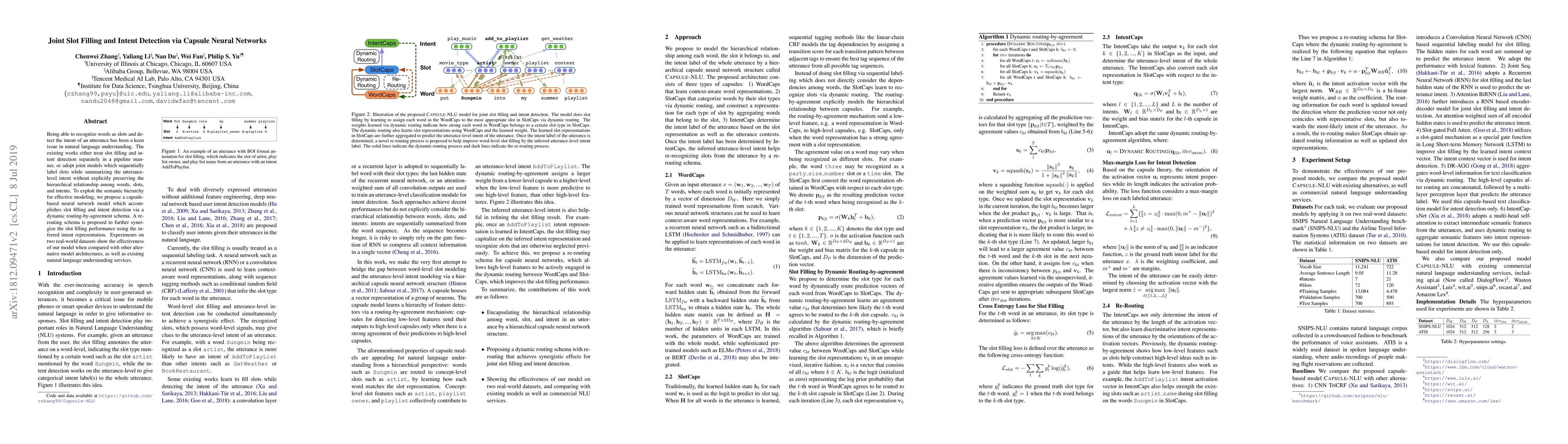This paper proposes a capsule-based neural network model for joint slot filling and intent detection, utilizing a dynamic routing-by-agreement schema to exploit semantic hierarchies. The model also employs a re-routing schema to enhance slot filling using inferred intent representations, demonstrating superior performance on real-world datasets.