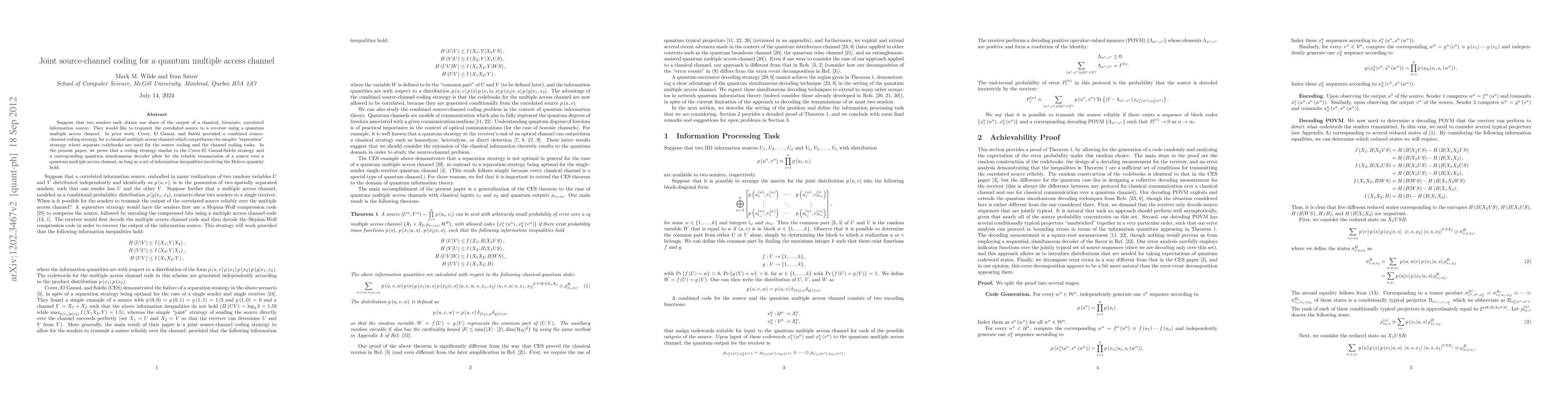 This paper proves that a joint source-channel coding strategy akin to the Cover-El Gamal-Salehi method, combined with a quantum simultaneous decoder, enables reliable transmission of correlated sources over a quantum multiple access channel, provided certain information inequalities are met. This approach outperforms the separation strategy in classical channels.