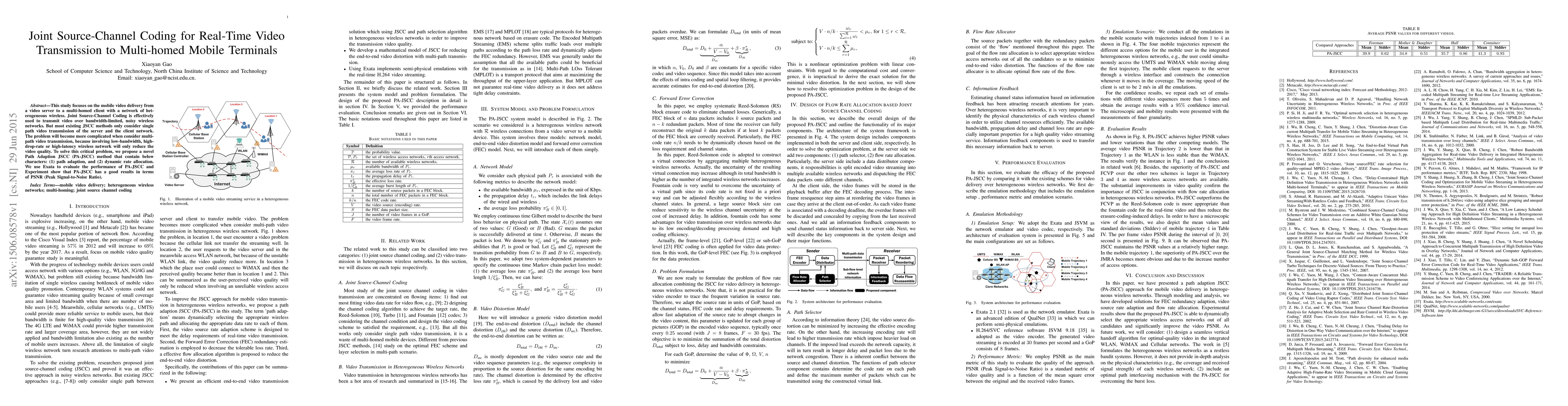 This study proposes a novel Path Adaption Joint Source-Channel Coding (PA-JSCC) method for real-time video transmission to multi-homed mobile terminals over heterogeneous wireless networks. PA-JSCC incorporates path adaptation and dynamic rate allocation to enhance video quality, achieving better PSNR results compared to existing methods.