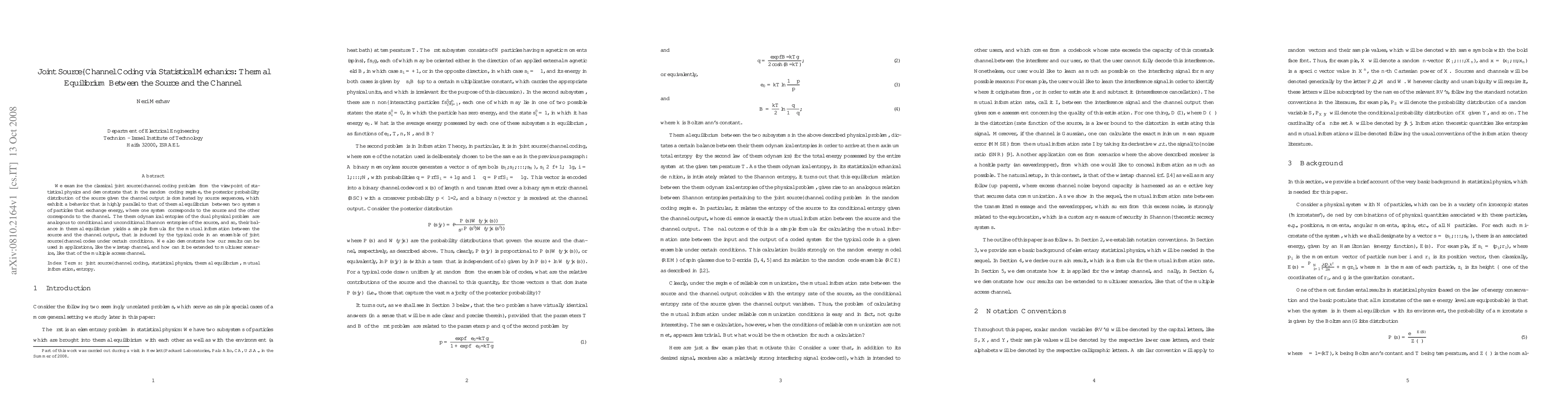 A research paper applies statistical mechanics to joint source-channel coding, revealing a thermal equilibrium between the source and channel that yields a simple formula for mutual information, applicable to wiretap channels and multiuser scenarios.
