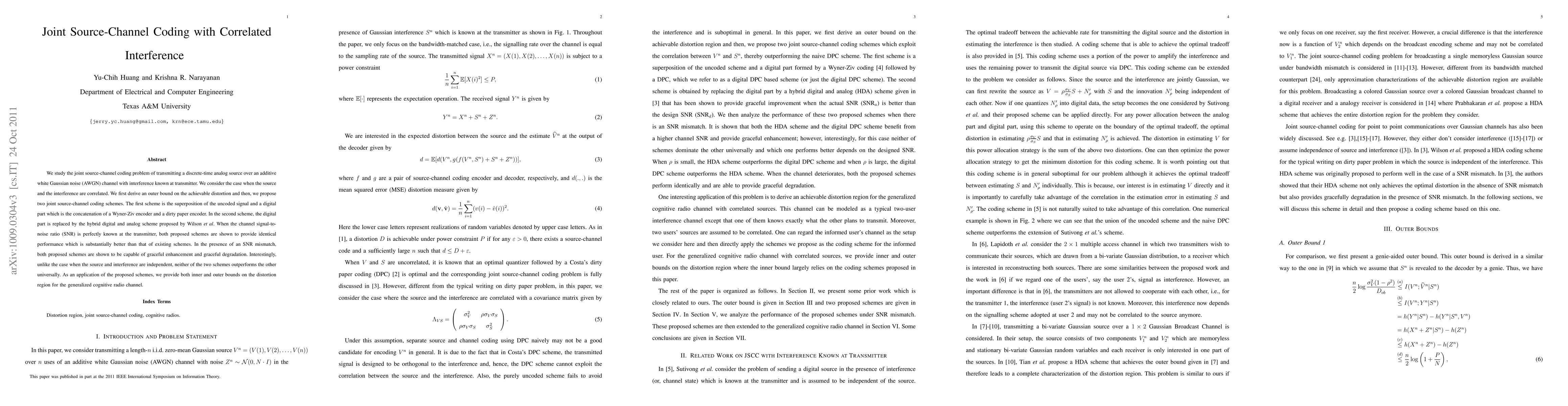 This paper investigates joint source-channel coding for transmitting a correlated analog source over an AWGN channel with known interference, proposing two coding schemes that outperform existing methods. The performance of both schemes is comparable when the SNR is known, but neither universally outperforms the other under interference correlation.