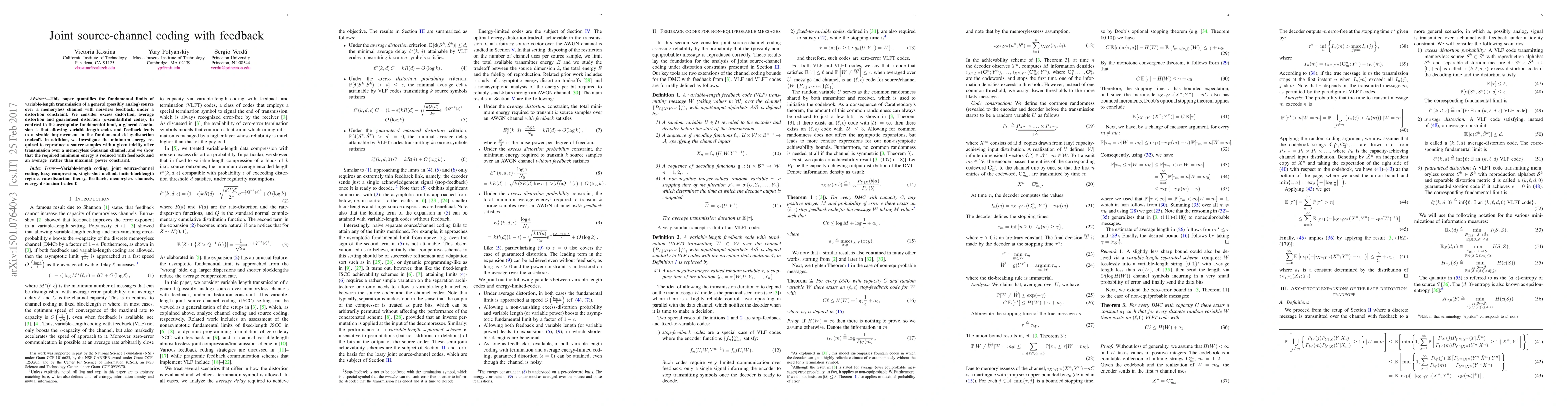 This paper explores the benefits of variable-length codes and noiseless feedback in joint source-channel coding, demonstrating significant improvements in delay-distortion tradeoffs. It also investigates the minimum energy needed for source reproduction over a Gaussian channel, showing reduced energy requirements with feedback and average power constraints.
