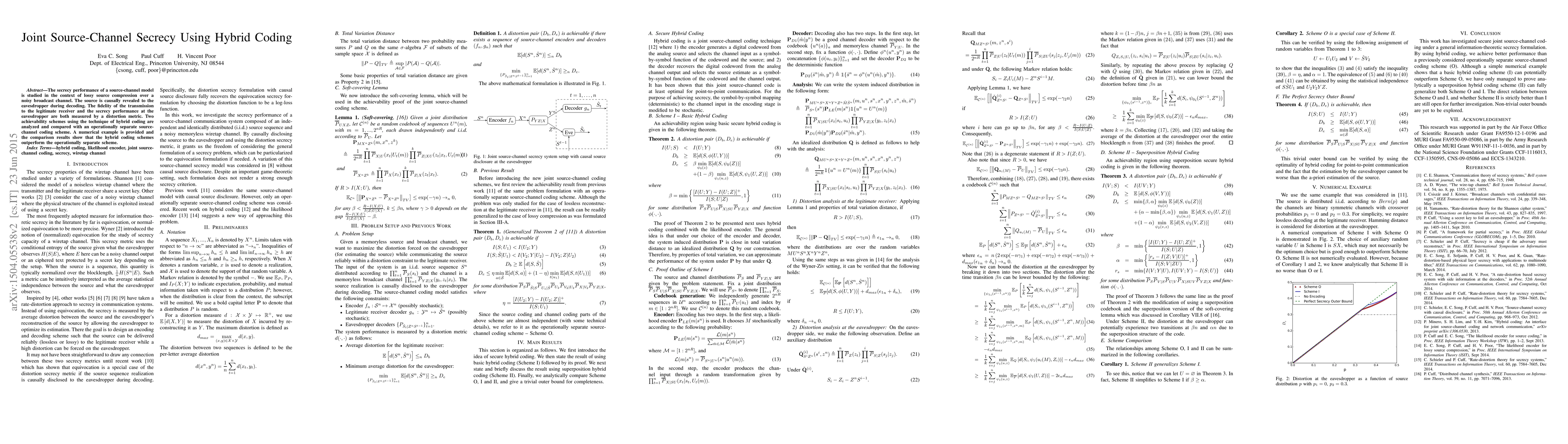 This paper investigates the secrecy performance of a source-channel model using hybrid coding for lossy source compression over a noisy broadcast channel. The hybrid coding schemes outperform an operationally separate source-channel coding scheme, as demonstrated by a numerical example.