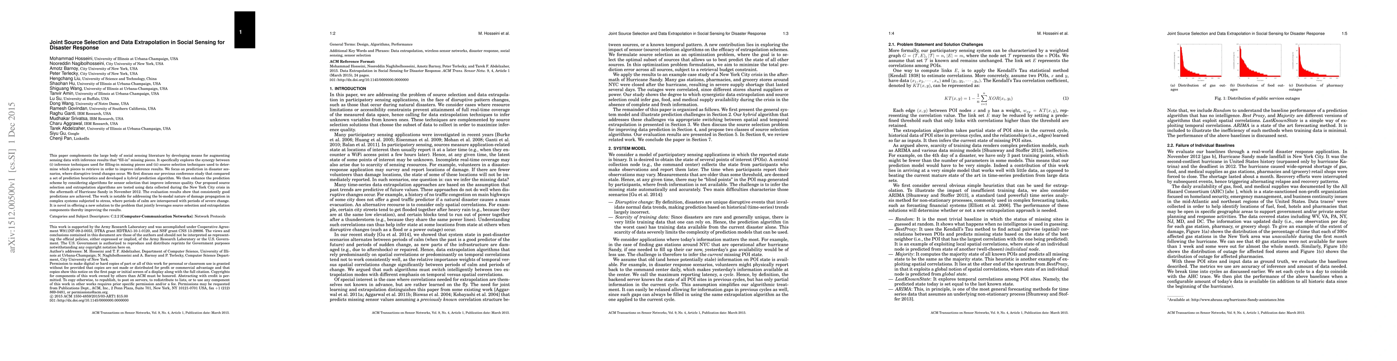 This paper complements the large body of social sensing literature by developing means for augmenting sensing data with inference results that "fill-in" missing pieces. It specifically explores the synergy between (i) inference techniques used for filling-in missing pieces and (ii) source selection techniques used to determine which pieces to retrieve in order to improve inference results. We focus on prediction in disaster scenarios, where disruptive trend changes occur. We first discuss our previous conference study that compared a set of prediction heuristics and developed a hybrid prediction algorithm. We then enhance the prediction scheme by considering algorithms for sensor selection that improve inference quality. Our proposed source selection and extrapolation algorithms are tested using data collected during the New York City crisis in the aftermath of Hurricane Sandy in November 2012. The evaluation results show that consistently good predictions are achieved. The work is notable for addressing the bi-modal nature of damage propagation in complex systems subjected to stress, where periods of calm are interspersed with periods of severe change. It is novel in offering a new solution to the problem that jointly leverages source selection and extrapolation components thereby improving the results.