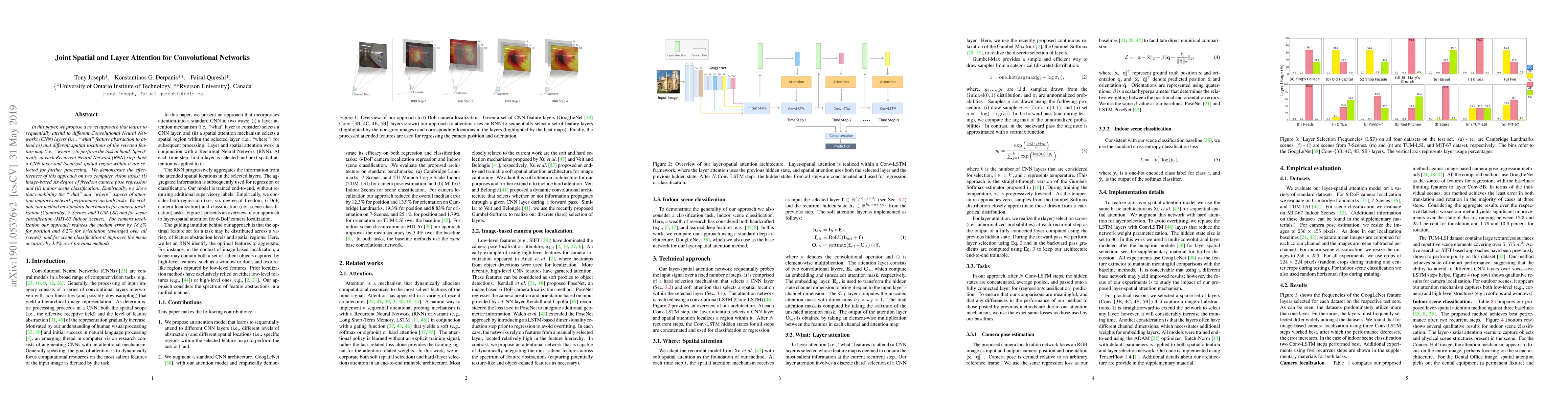 This paper proposes a novel approach that combines spatial and layer attention for convolutional networks to improve performance on tasks like camera pose regression and scene classification.