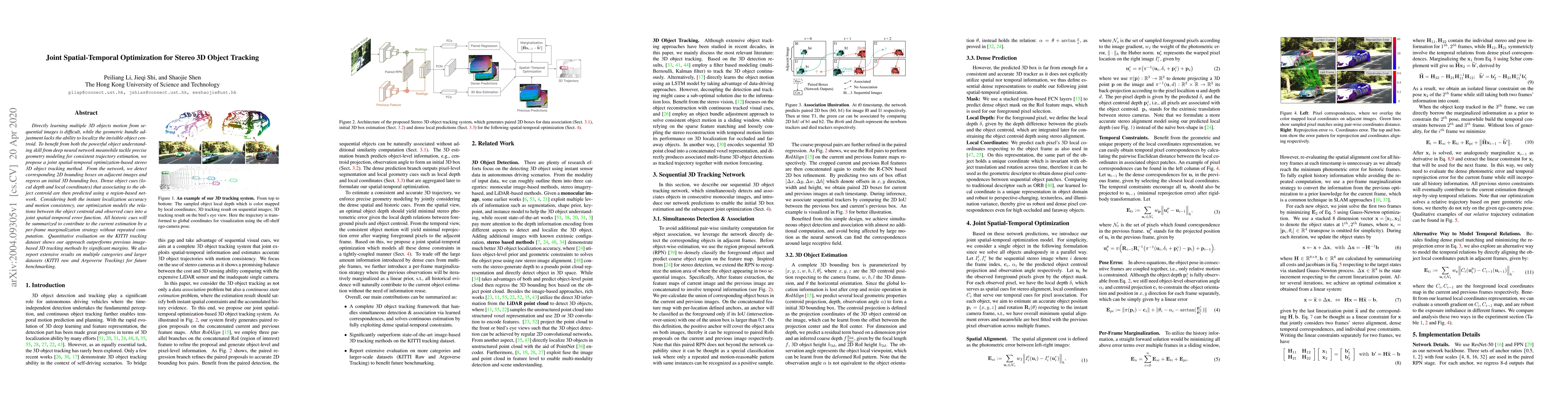 This paper proposes a joint spatial-temporal optimization method for stereo 3D object tracking, combining deep neural networks for object detection and regression with geometric bundle adjustment for precise trajectory estimation. The approach outperforms previous methods by leveraging dense object cues and a marginalization strategy for efficient computation.