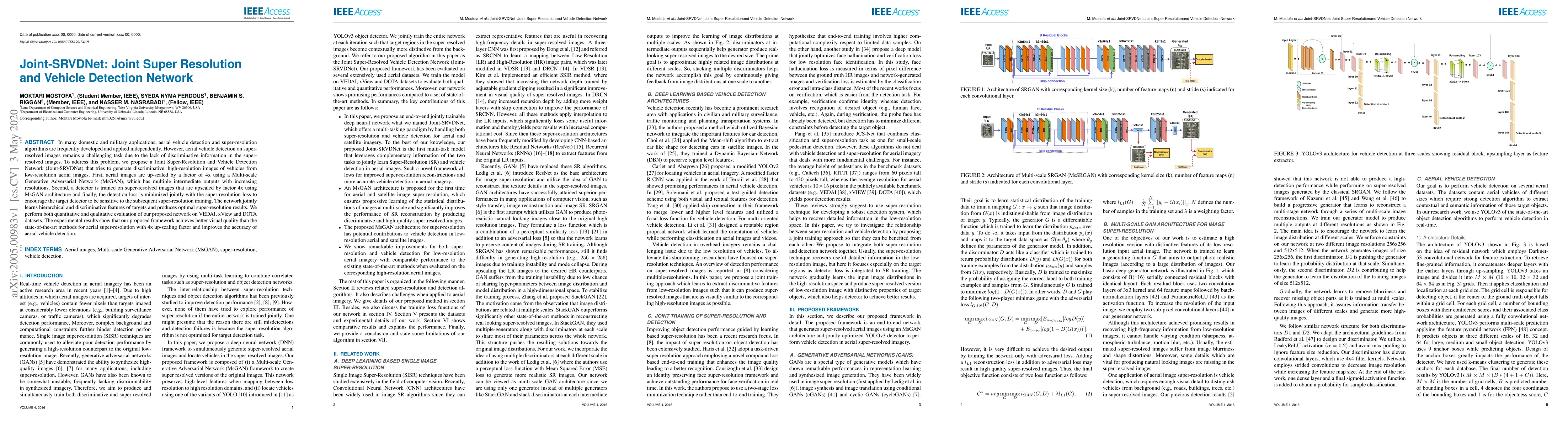 In many domestic and military applications, aerial vehicle detection and super-resolutionalgorithms are frequently developed and applied independently. However, aerial vehicle detection on super-resolved images remains a challenging task due to the lack of discriminative information in the super-resolved images. To address this problem, we propose a Joint Super-Resolution and Vehicle DetectionNetwork (Joint-SRVDNet) that tries to generate discriminative, high-resolution images of vehicles fromlow-resolution aerial images. First, aerial images are up-scaled by a factor of 4x using a Multi-scaleGenerative Adversarial Network (MsGAN), which has multiple intermediate outputs with increasingresolutions. Second, a detector is trained on super-resolved images that are upscaled by factor 4x usingMsGAN architecture and finally, the detection loss is minimized jointly with the super-resolution loss toencourage the target detector to be sensitive to the subsequent super-resolution training. The network jointlylearns hierarchical and discriminative features of targets and produces optimal super-resolution results. Weperform both quantitative and qualitative evaluation of our proposed network on VEDAI, xView and DOTAdatasets. The experimental results show that our proposed framework achieves better visual quality than thestate-of-the-art methods for aerial super-resolution with 4x up-scaling factor and improves the accuracy ofaerial vehicle detection.