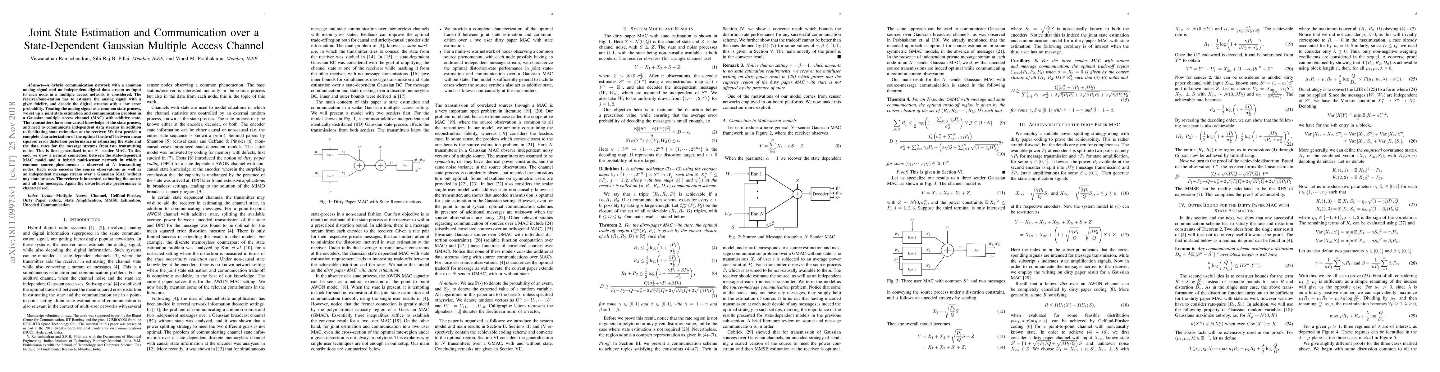 A hybrid communication network with a common analog signal and an independent digital data stream as input to each node in a multiple access network is considered. The receiver/base-station has to estimate the analog signal with a given fidelity, and decode the digital streams with a low error probability. Treating the analog signal as a common state process, we set up a joint state estimation and communication problem in a Gaussian multiple access channel (MAC) with additive state. The transmitters have non-causal knowledge of the state process, and need to communicate independent data streams in addition to facilitating state estimation at the receiver. We first provide a complete characterization of the optimal trade-off between mean squared error distortion performance in estimating the state and the data rates for the message streams from two transmitting nodes. This is then generalized to an N-sender MAC. To this end, we show a natural connection between the state-dependent MAC model and a hybrid multi-sensor network in which a common source phenomenon is observed at N transmitting nodes. Each node encodes the source observations as well as an independent message stream over a Gaussian MAC without any state process. The receiver is interested estimating the source and all the messages. Again the distortion-rate performance is characterized.