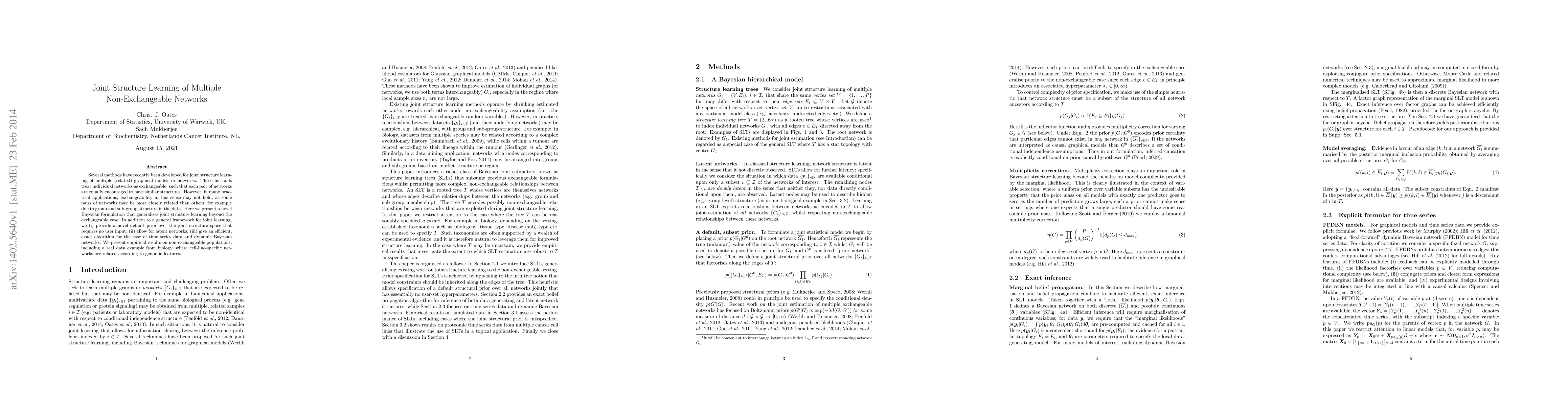 Several methods have recently been developed for joint structure learning of multiple (related) graphical models or networks. These methods treat individual networks as exchangeable, such that each pair of networks are equally encouraged to have similar structures. However, in many practical applications, exchangeability in this sense may not hold, as some pairs of networks may be more closely related than others, for example due to group and sub-group structure in the data. Here we present a novel Bayesian formulation that generalises joint structure learning beyond the exchangeable case. In addition to a general framework for joint learning, we (i) provide a novel default prior over the joint structure space that requires no user input; (ii) allow for latent networks; (iii) give an efficient, exact algorithm for the case of time series data and dynamic Bayesian networks. We present empirical results on non-exchangeable populations, including a real data example from biology, where cell-line-specific networks are related according to genomic features.