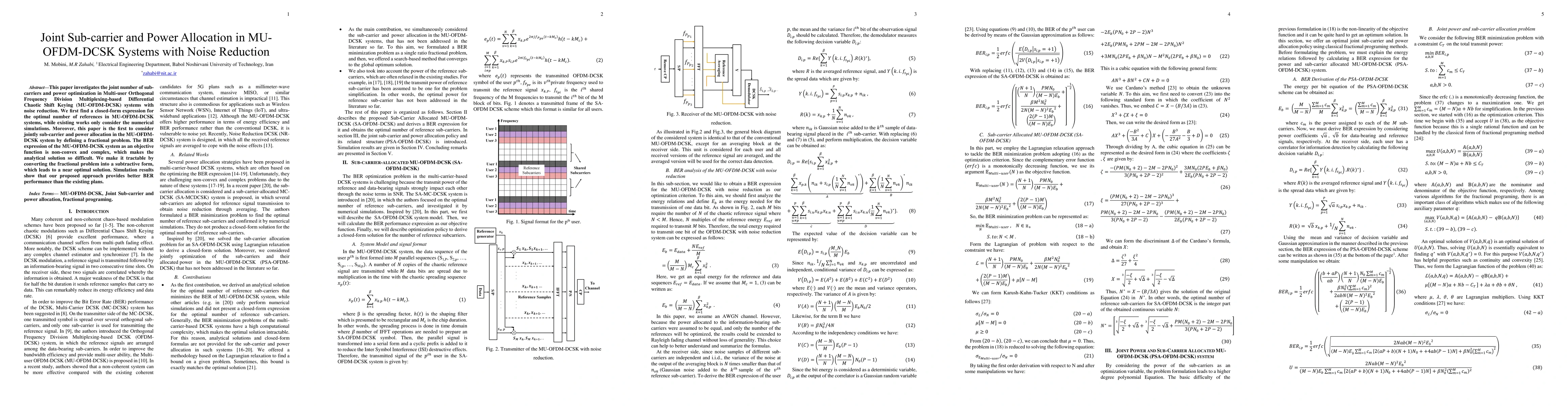 This paper optimizes subcarrier and power allocation in MU OFDM DCSK systems to reduce noise, providing better BER performance than existing plans through a novel approach.