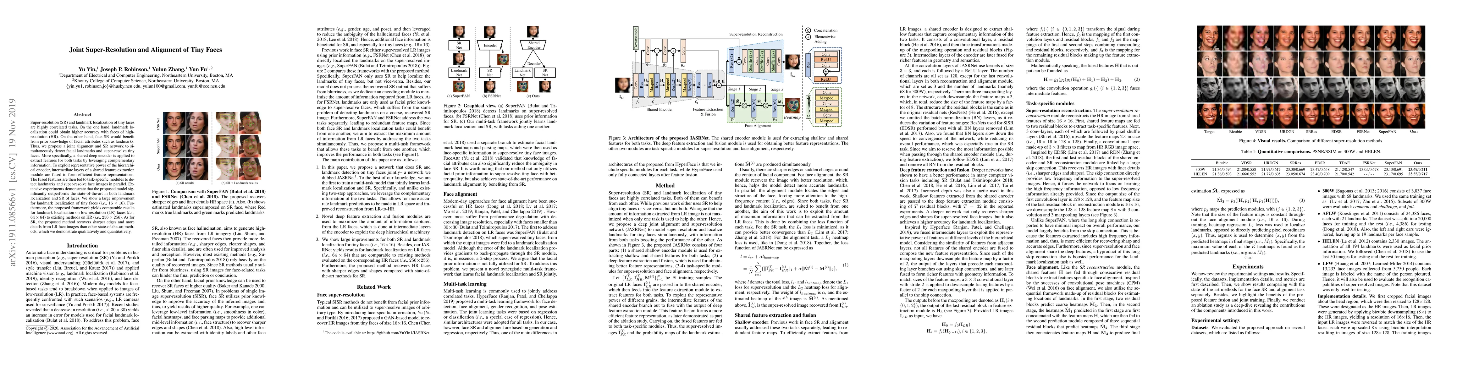 This paper proposes a joint network for super-resolution and alignment of tiny faces, leveraging shared deep encoder features for both tasks. The model significantly outperforms existing methods in both landmark localization and face super-resolution, especially for tiny faces, while also achieving comparable results for low-resolution faces.