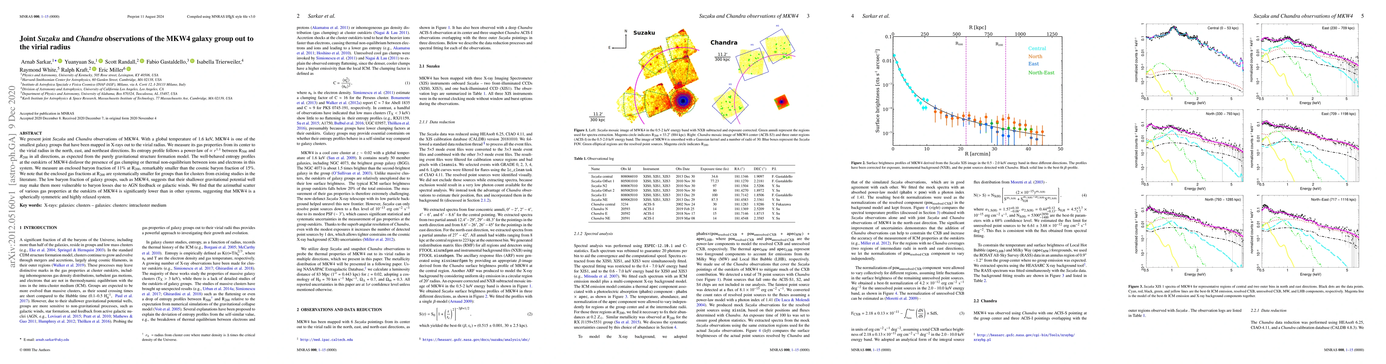 This study combines Suzaku and Chandra observations to analyze the MKW4 galaxy group, revealing its gas properties and entropy profile out to the virial radius. The entropy profile follows a power-law, indicating a purely gravitational structure formation model, and the low baryon fraction suggests vulnerability to baryon losses. MKW4 exhibits a low azimuthal scatter, indicating it is a highly relaxed, spherically symmetric system.