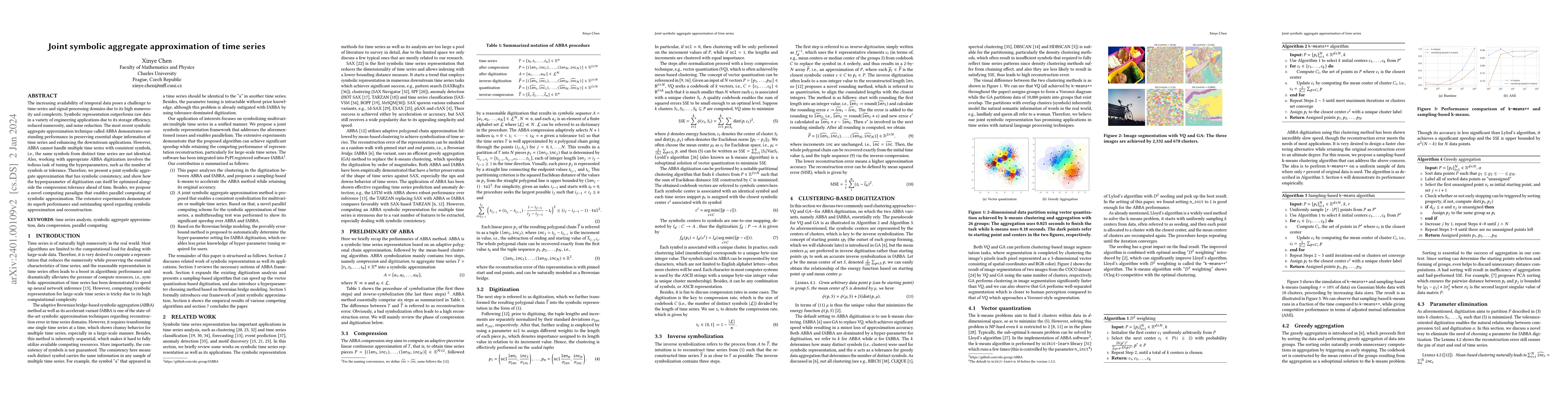 This paper introduces a joint symbolic aggregate approximation technique for time series data, addressing the limitations of existing methods like ABBA by ensuring consistent symbols across multiple series and optimizing the digitization hyperparameters. The proposed method also enables parallel computing, significantly improving performance and speed in symbolic approximation and reconstruction.