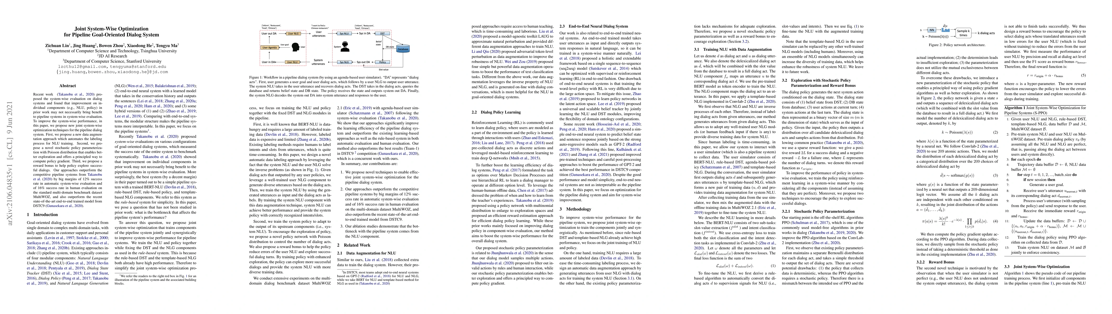 Researchers propose new joint system-wise optimization techniques for pipeline dialog systems, outperforming competitive models by 12% in automatic evaluation and 16% in human evaluation.