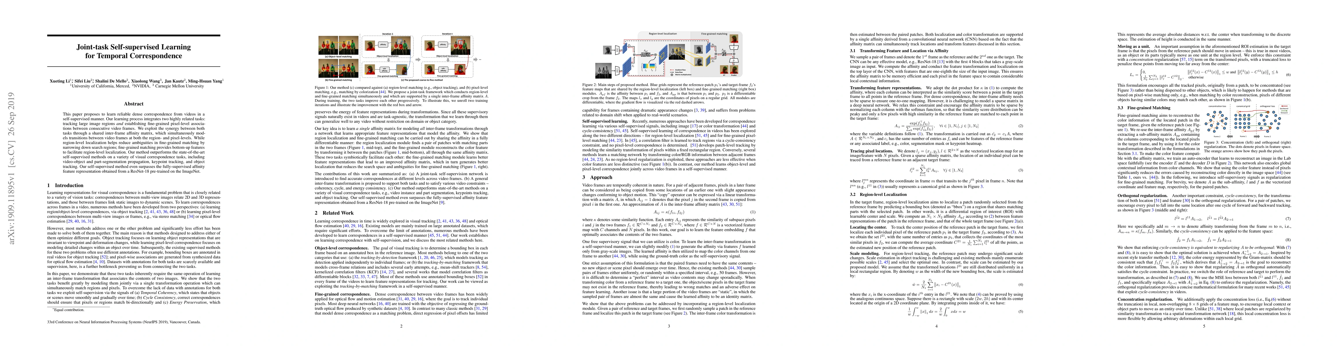 This paper introduces a self-supervised learning method for dense video correspondence by jointly tackling region-level tracking and pixel-level associations, achieving superior performance on various visual tasks compared to state-of-the-art and even fully-supervised methods.