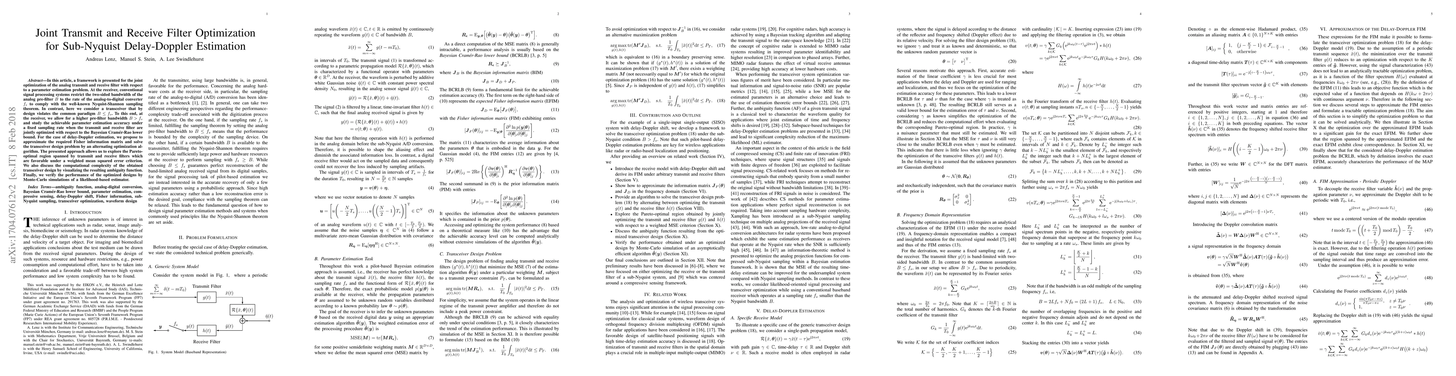 In this article, a framework is presented for the joint optimization of the analog transmit and receive filter with respect to a parameter estimation problem. At the receiver, conventional signal processing systems restrict the two-sided bandwidth of the analog pre-filter $B$ to the rate of the analog-to-digital converter $f_s$ to comply with the well-known Nyquist-Shannon sampling theorem. In contrast, here we consider a transceiver that by design violates the common paradigm $B\leq f_s$. To this end, at the receiver, we allow for a higher pre-filter bandwidth $B>f_s$ and study the achievable parameter estimation accuracy under a fixed sampling rate when the transmit and receive filter are jointly optimized with respect to the Bayesian Cram\'{e}r-Rao lower bound. For the case of delay-Doppler estimation, we propose to approximate the required Fisher information matrix and solve the transceiver design problem by an alternating optimization algorithm. The presented approach allows us to explore the Pareto-optimal region spanned by transmit and receive filters which are favorable under a weighted mean squared error criterion. We also discuss the computational complexity of the obtained transceiver design by visualizing the resulting ambiguity function. Finally, we verify the performance of the optimized designs by Monte-Carlo simulations of a likelihood-based estimator.