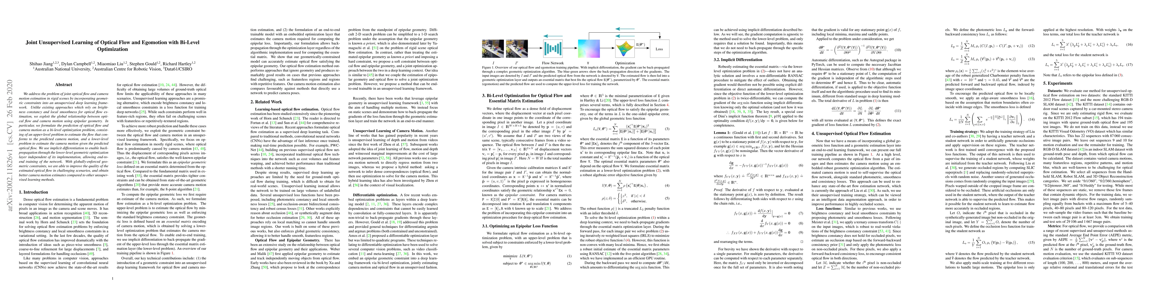 This paper proposes an unsupervised deep learning framework for jointly estimating optical flow and camera motion in rigid scenes, leveraging epipolar geometry. It formulates the problem as a bi-level optimization, improving both optical flow and camera motion estimates through globally-enforced geometric constraints.