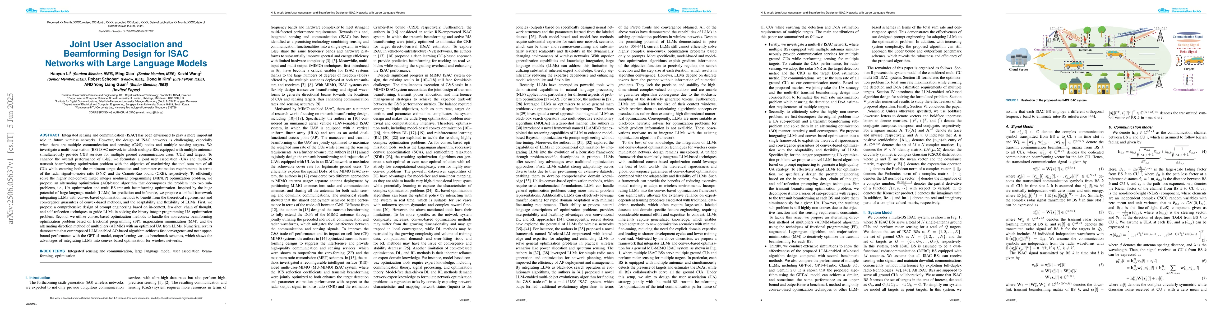 Researchers develop a new algorithm using large language models to optimize joint user association and beamforming design in Integrated Sensing and Communication networks, achieving near upper-bound performance and fast convergence.