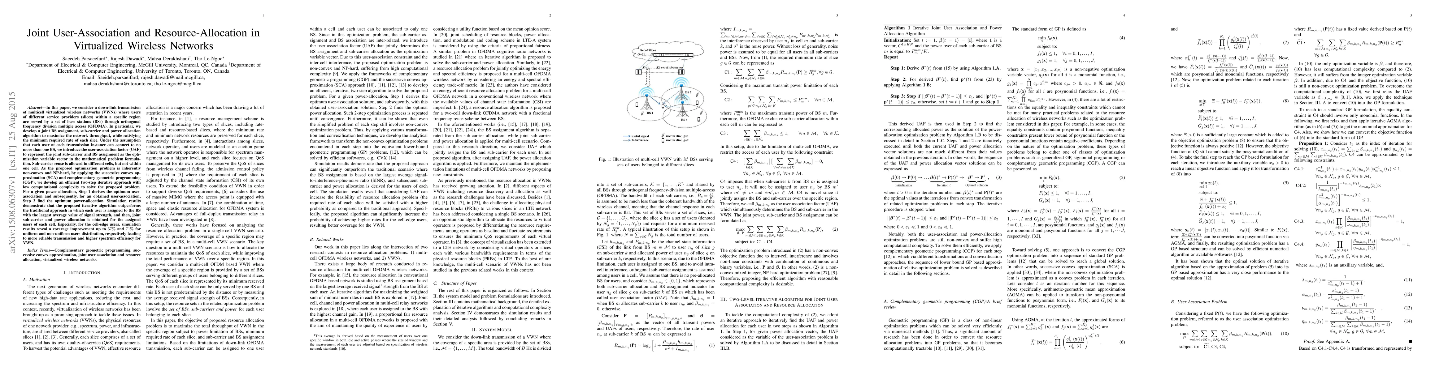 This paper proposes a joint user-association and resource-allocation algorithm for multicell virtualized wireless networks using OFDMA to maximize throughput while ensuring minimum service rates. The iterative approach, combining successive convex approximation and complementary geometric programming, efficiently solves the non-convex optimization problem, achieving better performance and coverage improvement for cell-edge users compared to traditional methods.