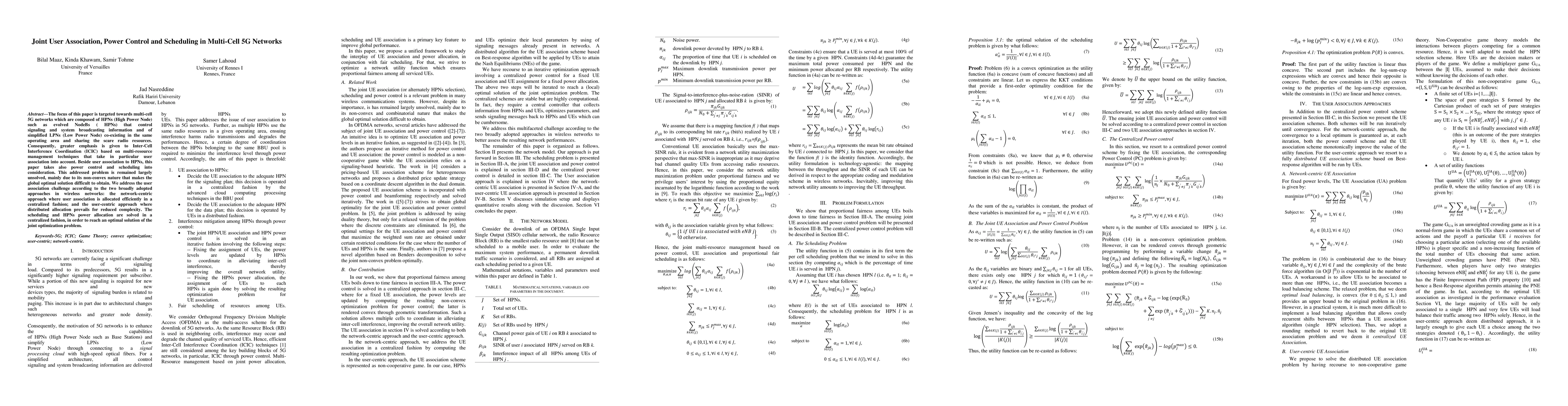 This paper explores joint optimization of user association, power control, and scheduling in multi-cell 5G networks, focusing on High Power Node (HPN) and Low Power Node (LPN) coexistence. It addresses the non-convex problem through centralized and distributed approaches for user association, while employing centralized methods for scheduling and power allocation to achieve optimal solutions.