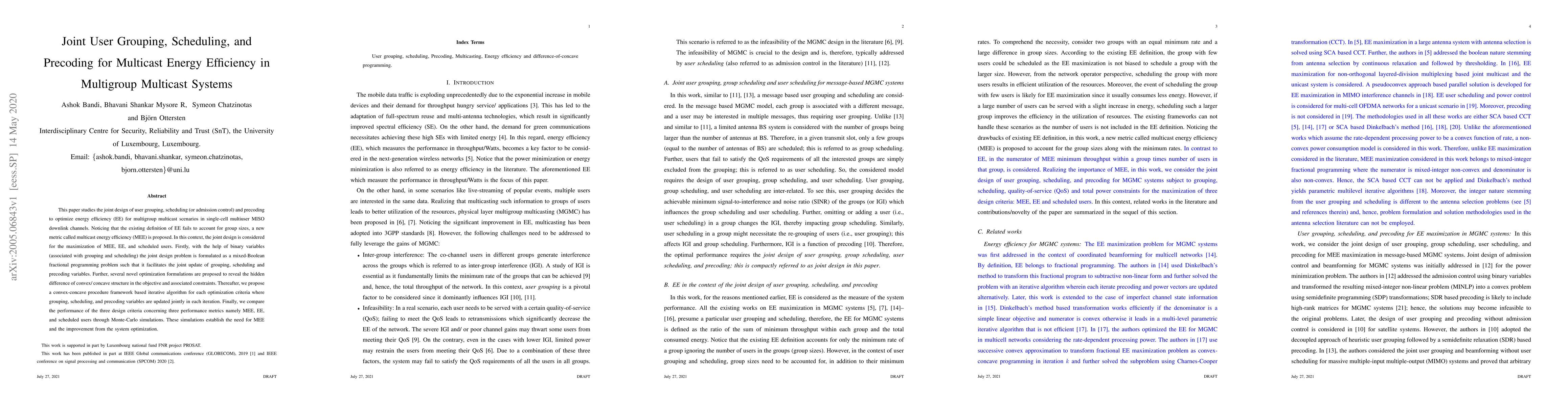 This paper proposes a new metric, multicast energy efficiency (MEE), to optimize energy efficiency in multigroup multicast systems. It presents a joint design framework for user grouping, scheduling, and precoding to maximize MEE, traditional energy efficiency (EE), and the number of scheduled users, employing a convex-concave procedure iterative algorithm and demonstrating performance improvements via Monte-Carlo simulations.