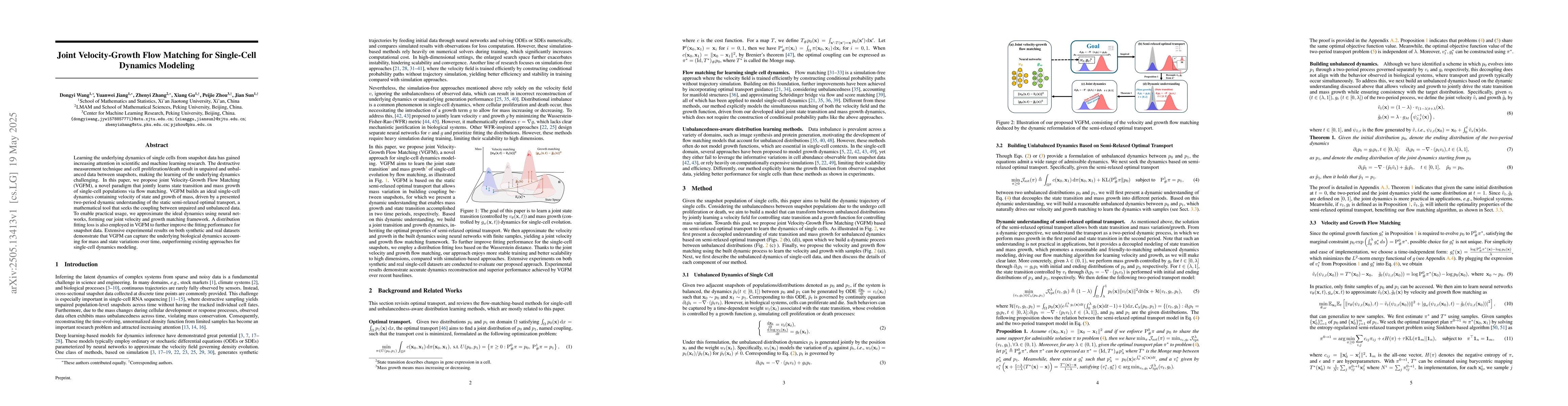 Researchers propose Joint Velocity-Growth Flow Matching (VGFM) to model single-cell dynamics from unpaired data, capturing both state transitions and mass growth. VGFM outperforms existing approaches on synthetic and real datasets, enabling practical usage in understanding biological dynamics.