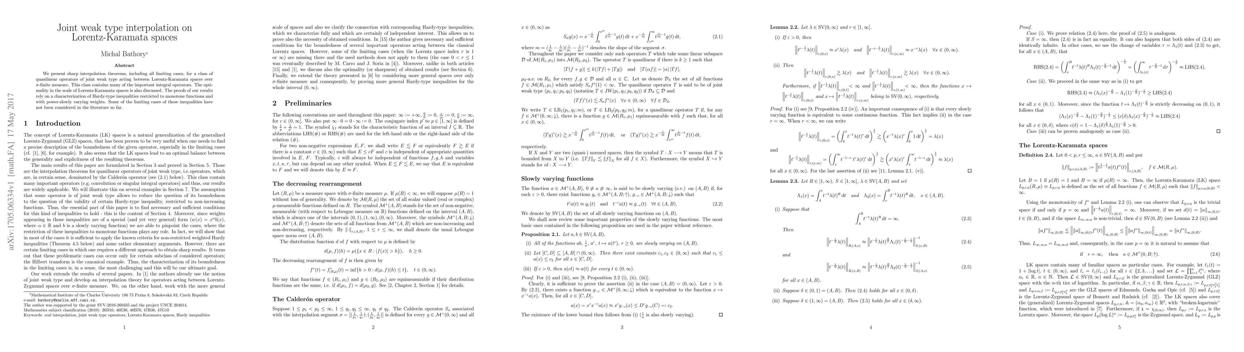 We present sharp interpolation theorems, including all limiting cases, for a class of quasilinear operators of joint weak type acting between Lorentz-Karamata spaces over $\sigma$-finite measure. This class contains many of the important integral operators. The optimality in the scale of Lorentz-Karamata spaces is also discussed. The proofs of our results rely on a characterization of Hardy-type inequalities restricted to monotone functions and with power-slowly varying weights. Some of the limiting cases of these inequalities have not been considered in the literature so far.