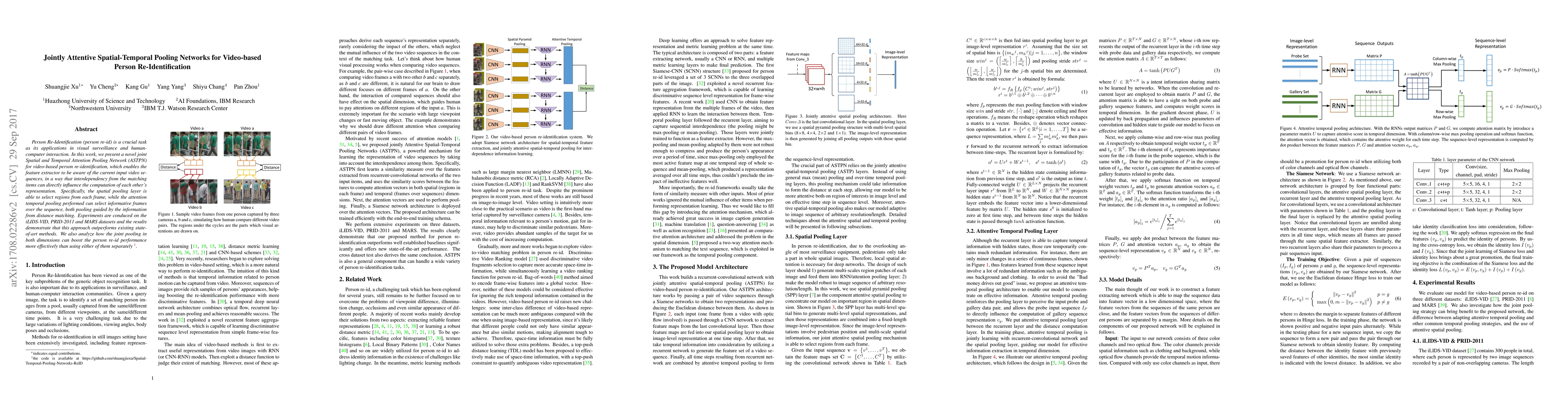 This paper introduces a novel Joint Spatial and Temporal Attention Pooling Network (ASTPN) for video-based person re-identification, which enhances feature extraction by jointly considering spatial regions and temporal frames. The approach outperforms existing methods on multiple datasets, demonstrating the effectiveness of combined spatial and temporal attention.