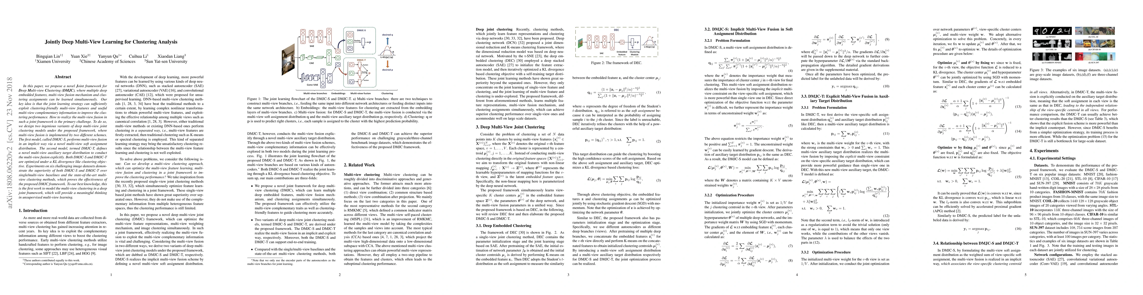 This paper introduces a novel Joint Deep Multi-view Clustering (DMJC) framework that simultaneously learns deep embedded features, multi-view fusion, and clustering assignments. It proposes two models, DMJC-S and DMJC-T, to implement multi-view fusion implicitly and explicitly, respectively, and demonstrates superior performance over baselines and state-of-the-art methods on image datasets.