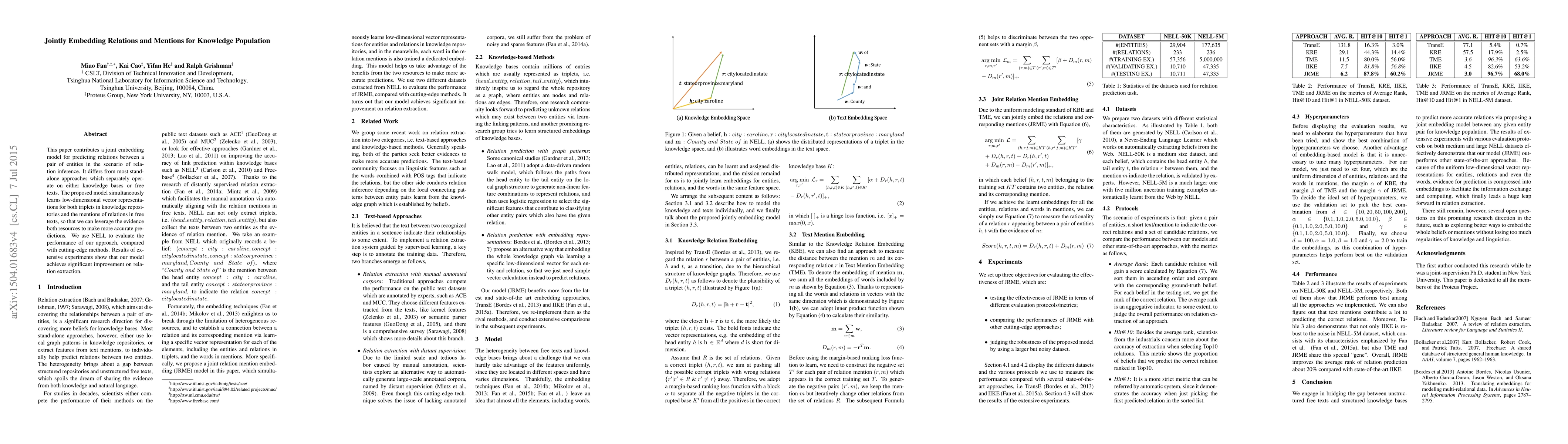 This paper proposes a joint embedding model to predict relations between entities by learning representations for both knowledge base triplets and text mentions, achieving better accuracy than existing methods, as demonstrated by experiments on NELL.