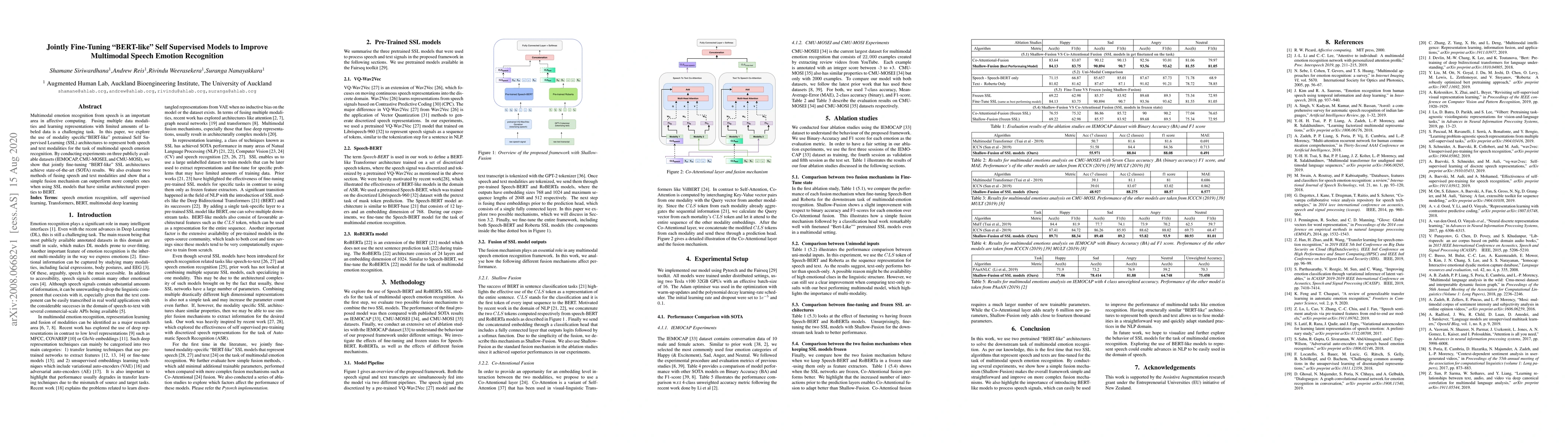 This paper investigates the use of "BERT-like" self-supervised models for multimodal speech emotion recognition, achieving state-of-the-art results through joint fine-tuning on three datasets. Simple fusion of speech and text modalities outperforms complex methods when combined with similar BERT-like architectures.