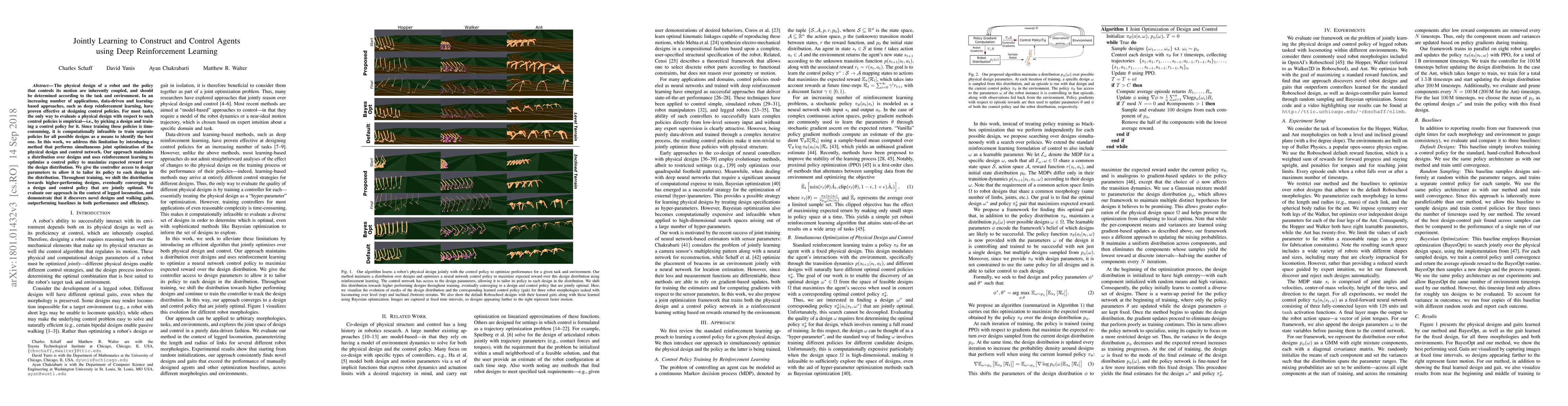 Researchers developed a method that jointly optimizes robot design and control policies using deep reinforcement learning, discovering novel designs and walking gaits that outperform existing baselines.