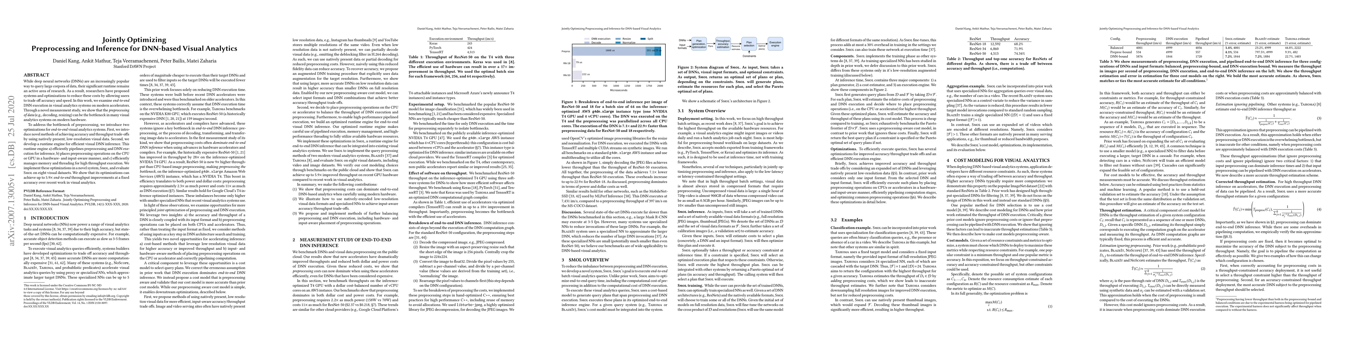 This paper investigates the runtime optimization of deep neural networks (DNNs) in visual analytics systems, identifying preprocessing as a significant bottleneck. It proposes two optimizations: utilizing low-resolution data for accuracy-speed trade-offs and a runtime engine that efficiently pipelines preprocessing and DNN inference, achieving up to 5.9x throughput improvements over recent methods.