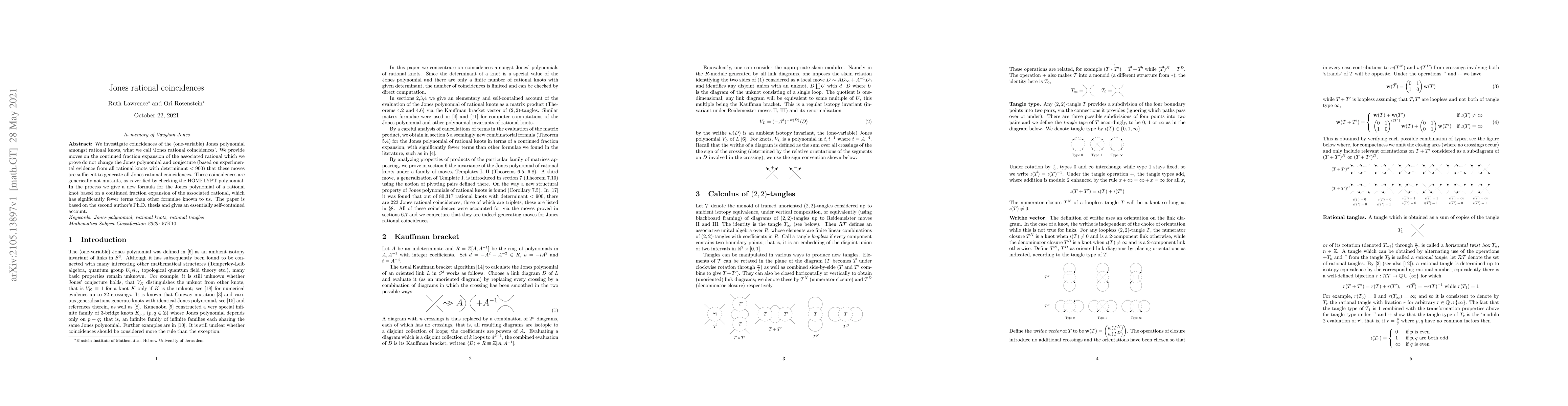 Researchers investigate 'Jones rational coincidences' in knot theory, discovering a new formula for the Jones polynomial of rational knots with significantly fewer terms than existing formulas. They propose that certain moves on the continued fraction expansion can generate all these coincidences.
