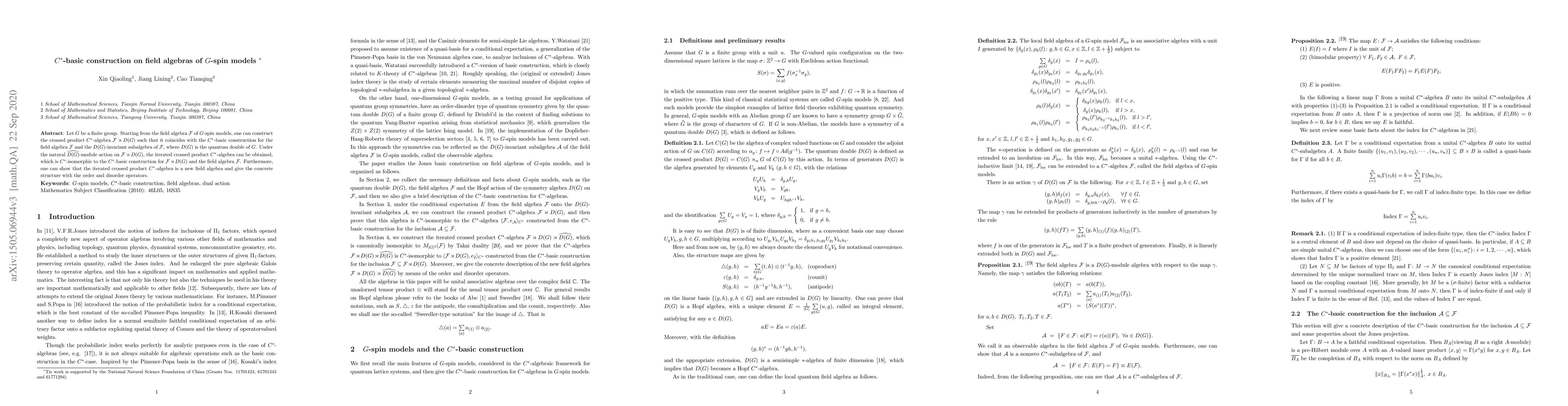Let $G$ be a finite group. Starting from the field algebra ${\mathcal{F}}$ of $G$-spin models, one can construct the crossed product $C^*$-algebra ${\mathcal{F}}\rtimes D(G)$ such that it coincides with the $C^*$-basic construction for the field algebra ${\mathcal{F}}$ and the $D(G)$-invariant subalgebra of ${\mathcal{F}}$, where $D(G)$ is the quantum double of $G$. Under the natural $\widehat{D(G)}$-module action on ${\mathcal{F}}\rtimes D(G)$,the iterated crossed product $C^*$-algebra can be obtained, which is $C^*$-isomorphic to the $C^*$-basic construction for ${\mathcal{F}}\rtimes D(G)$ and the field algebra ${\mathcal{F}}$. Furthermore, one can show that the iterated crossed product $C^*$-algebra is a new field algebra and give the concrete structure with the order and disorder operators.