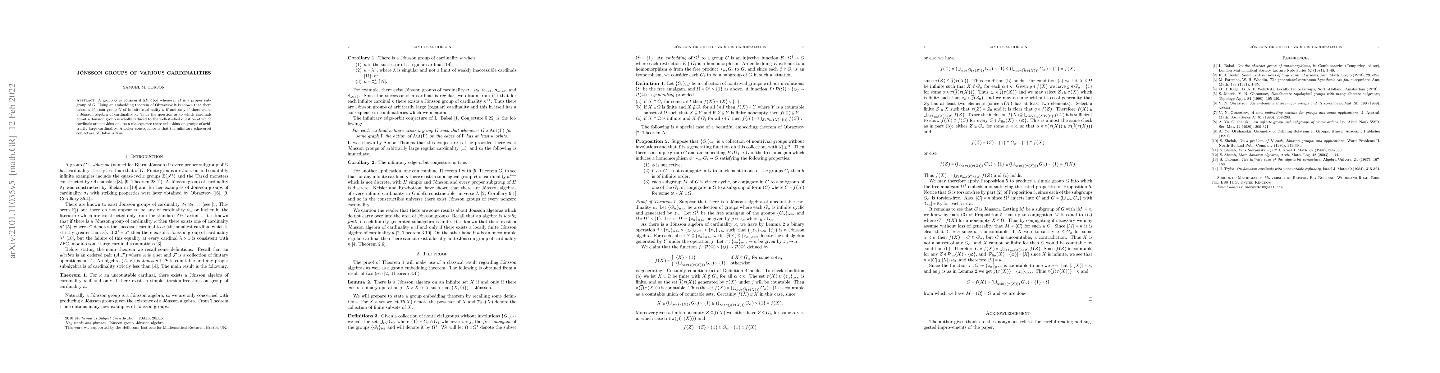 The paper establishes a connection between Jónsson groups and algebras of infinite cardinality, showing that their existence is equivalent. This allows for the construction of Jónsson groups of arbitrarily large cardinality, with implications for other mathematical conjectures.