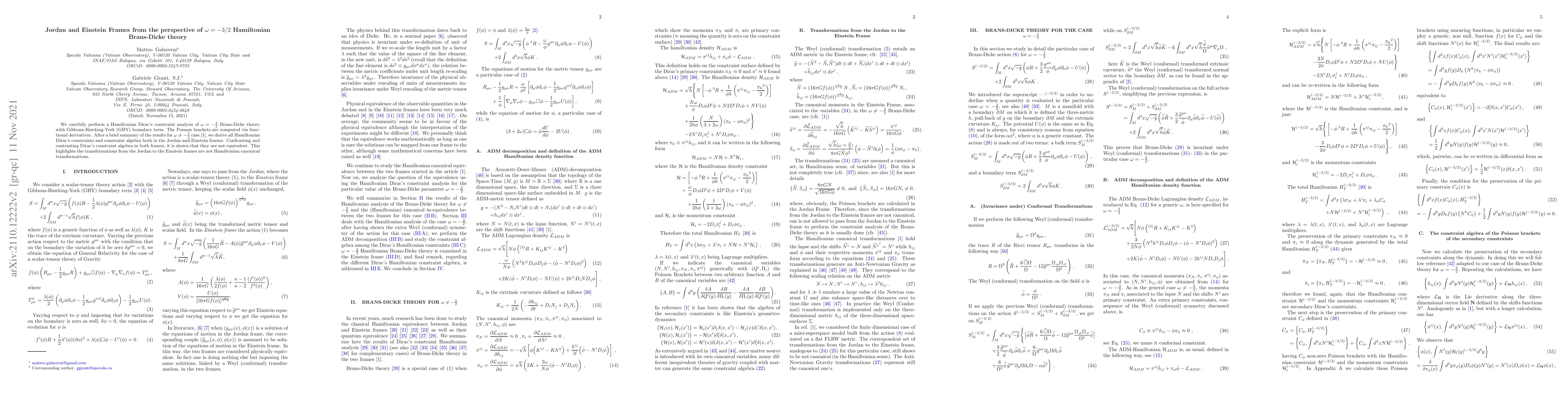 This paper conducts a Hamiltonian Dirac constraint analysis of Brans-Dicke theory with $\omega=-3/2$ and GHY boundary term, deriving constraints and constraint algebra in both Jordan and Einstein frames. It concludes that the constraint algebra in these frames is not equivalent, indicating that the transformations between them are not Hamiltonian canonical transformations.